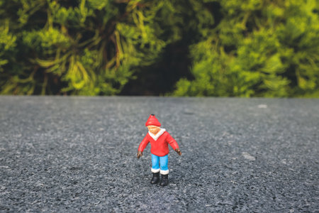 figure Kid dressed in red Santa Claus hat the concept