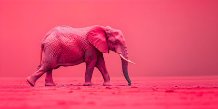 One Pink Elephant Standing Out in a Monochromatic Pink Environment With Space for Text. Concept Monochromatic Pink, Pink Elephant, Standing Out, Space for Text, Visual Contrast
