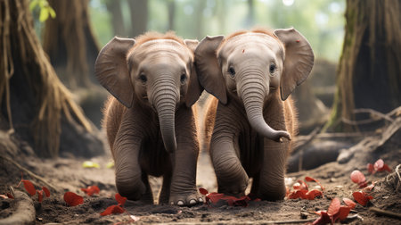 Elephant Family: A heartwarming scene unfolds as a majestic elephant and its calf stand together, their bond a testament to the beauty and strength of the wild.