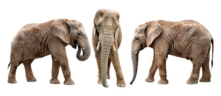 Two elephants isolated on a white background. The concept of conservation and protection of wild animals.