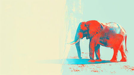 Blue and red elephants facing each other in a minimalist art against a textured background.