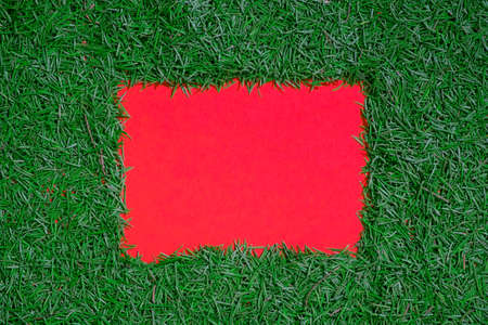 Red cardboard frame on a gray background.