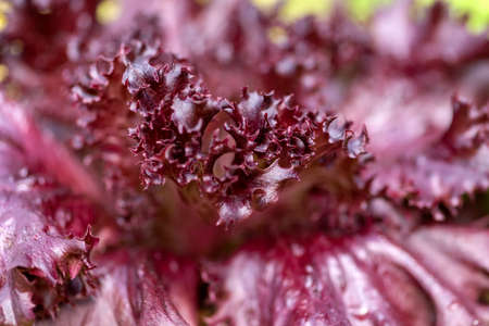 Detail of a bright red salad leaf ,white and red color shading ,abstract effect ,fantastic leaf texture