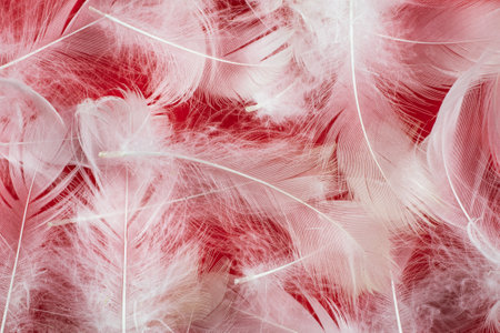Beautiful abstract white and red feathers on white background and soft white feather texture on red pattern and pink background, feather background, red banners