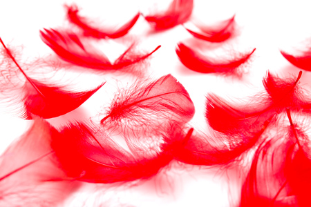 Beautiful abstract white and red feathers on white background and soft white feather texture on red pattern and red background, feather background, red banners