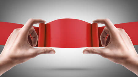 Number thirty red color over a blue background. Anniversary. Horizontal