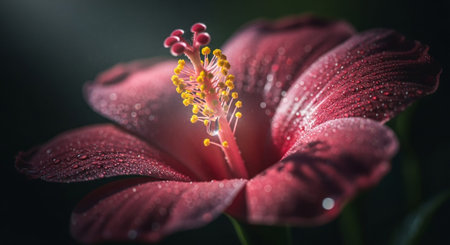 Elegant red flower with water droplets on dark background