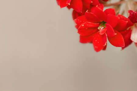 Close up of a red flower with blurred background and copy space.