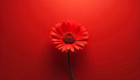 Vibrant red gerbera daisy against a matching monochrome background