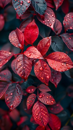 Vibrant Red leaves night. Dark abstract leaf. Generate Ai