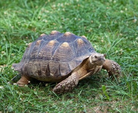 African Spurred Tortoise (Geochelone sulcata) in the garden
