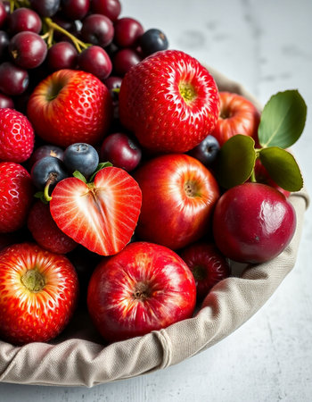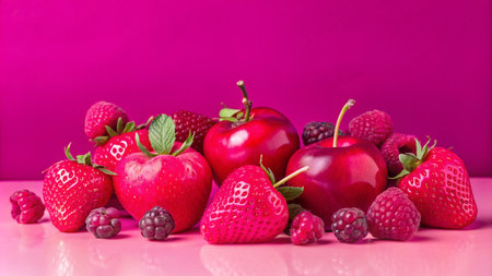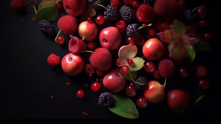 Red fruits and very colorful fruits. Created with Generative AI technology