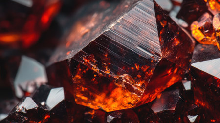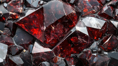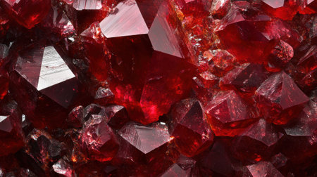 Gorgeous display of sparkling garnet crystals in vivid red color over a dark background, perfect for showcasing natural beauty and elegance in design.