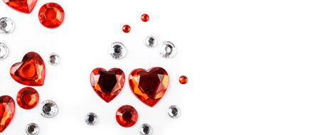 Hearts. Decorative stickers on bright background. Symbols of love for Happy Women's, Mother's, Valentine's Day. Valentine's day background. Ruby hearts.