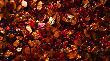 This close-up image showcases mesmerizing red gems with vibrant colors and intricate textures. The stunning sparkle and reflections create a luxurious and artistic atmosphere.