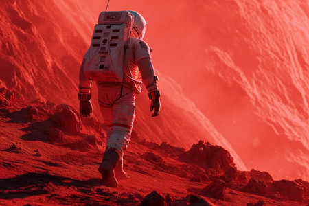 Adventurous Astronaut red planet. Future martian surface. Generate Ai