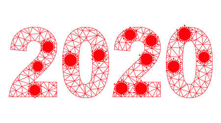 Mesh 2020 year digits polygonal icon vector illustration, with virus centers. Carcass model is based on 2020 year digits flat icon, with virus centers and polygonal mesh.