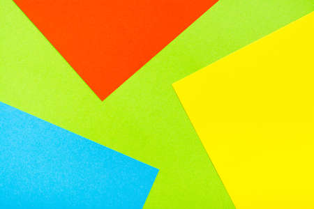 Abstract color papers geometry flat lay composition background with blue, yellow, green and red color tones