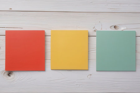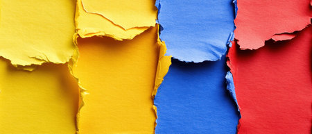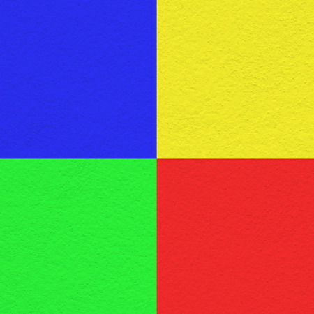 Four-color yellow green red blue abstract cardboard background. Sheets of cardboard are stacked on top of each other. Copy space
