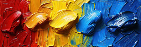 Bold swathes of oil paint in red, blue, yellow, and orange create a captivating visual on canvas, reflecting an artist's dynamic style and creative expression.
