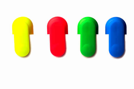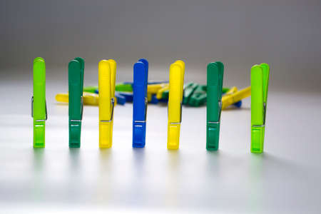 Colorful plastic clothespins on a light background. Space for your inscription. Minimalism, original and creative photography. Be different. The concept of individuality. Vertical wallpaper for a smartphone. High quality photo