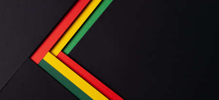 Black History Month color background. African American history month celebration. Abstract red, yellow, green color flag on black paper background