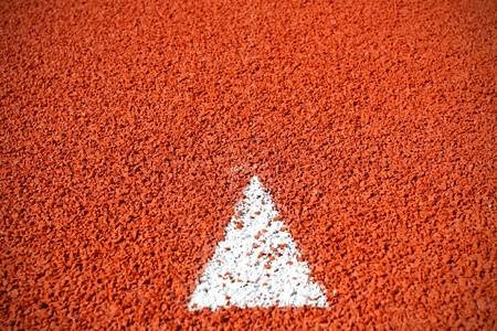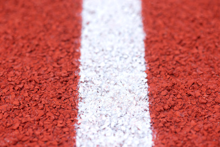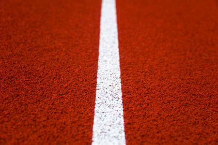 Sports stadium with red artificial rubber ground running tracks and white lines on it
