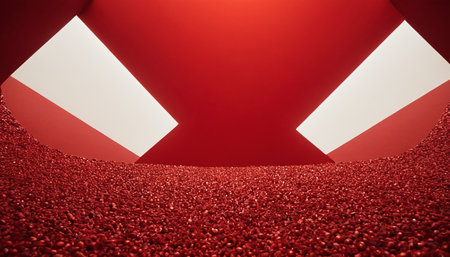Closeup of luxurious red carpet with a velvety smooth texture. Concept Luxurious Red Carpet, Closeup Shot, Smooth Velvet Texture