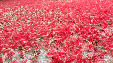 Close-up of a beautiful flower bed with red flowers, soft selective focus