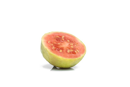 fresh red guava pieces with isolated white background. sweet guava with yellow skin