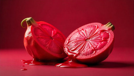 Halved Pomelo Fruit on Fuchsia Surface with Deep Shadow
