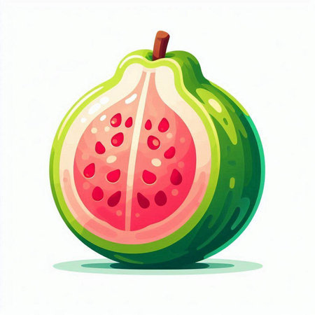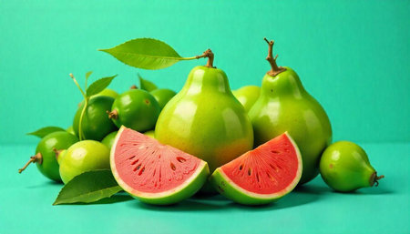 Vector illustration of guava fruit with leaves and watermelon slice.