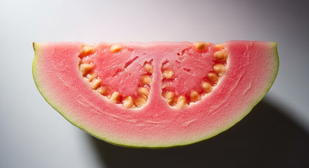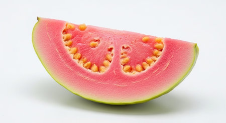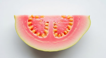 Guava fruit slice isolated on white background with clipping path and full depth of field. Top view. Flat lay