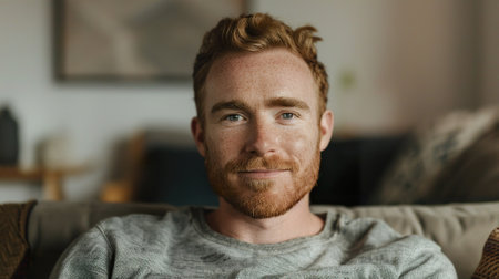 Portrait of a handsome young redhead man smiling at the camera. generated by AI
