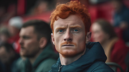 Surprised portrait of a red-haired man, puzzled expression of a red-haired youth