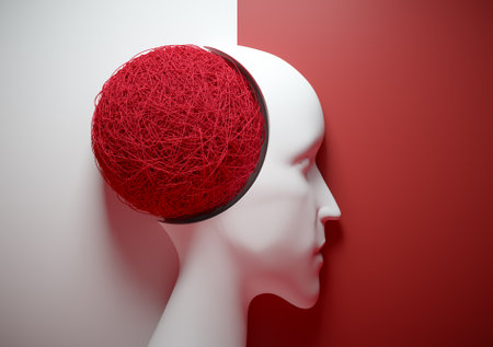 Human head profile and chaotic lines. Confusion and brainstorming concept. This is a 3d render illustration
