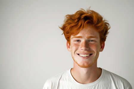 A picture of a man with red hair wearing a white shirt. Suitable for various uses.