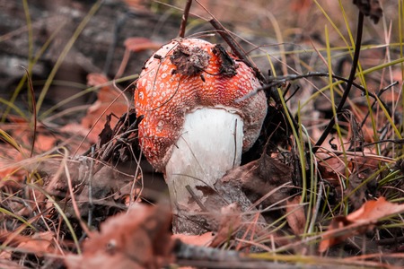 Amanita poisonous mushroom in the autumn forest