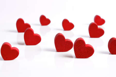 Red wooden hearts on a white background