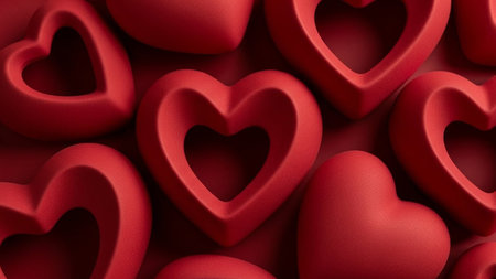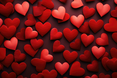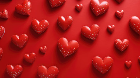 heart scattered on red background. Romantic composition representing love and affection generative AI