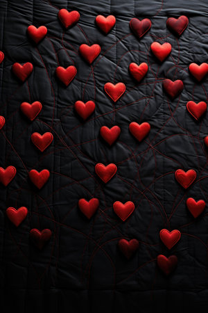 Red hearts on black background.