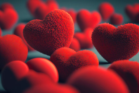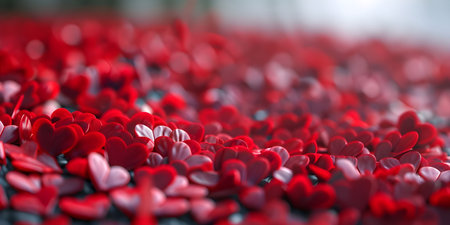 Velvety Hearts Panorama - Creating a Sea of Love in 3D, Valentine's Day Concept