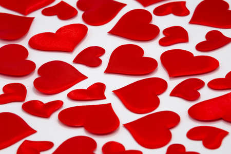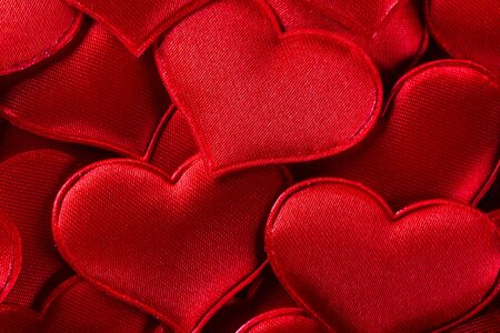 Valentine's day many red silk hearts background, love concept