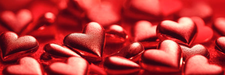 Crowd red heart shapes texture. Celebrate affection. Happy Valentine's Day greeting card, website header and social media post.