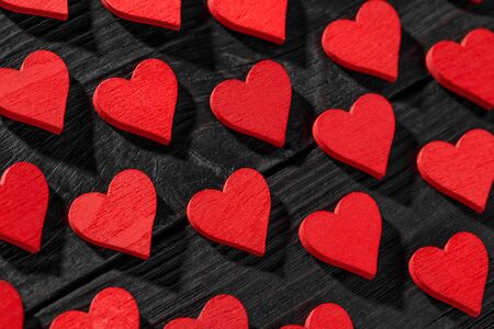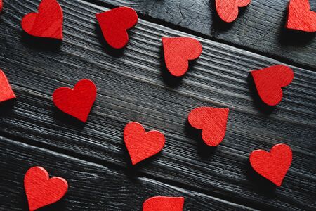 Red hearts on black background. Valentines day background. Love concept.