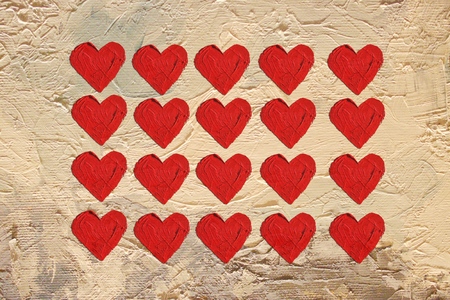 Hearts illustration on brush strokes textured background. For valentine's day, mother's day, wedding illustration. For creativity, imagination, greetings cards, posters.Oil on canvas.