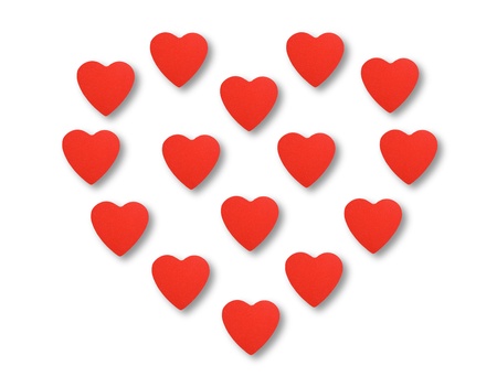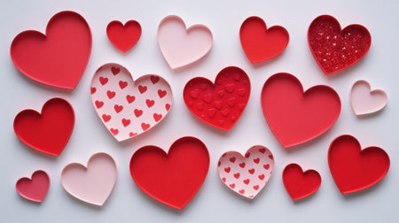 Collection of red and pink hearts on white background