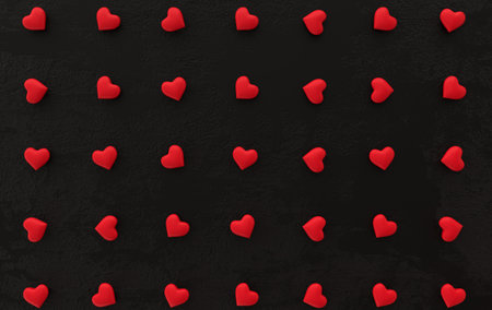 Minimalist Love on Black - Handmade Hearts Arranged Diagonally in a Valentine's Day Concept