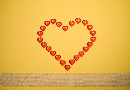 Red heart against yellow background.