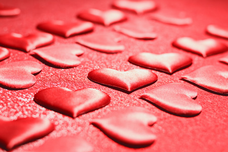 Valentine's day background with red hearts, shallow depth of field